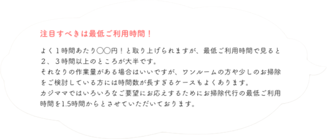 家事代行、家政婦というとまだまだ料金が高いイメージがありますが、 どなたでもご利用いただきやすい料金設定となっています。